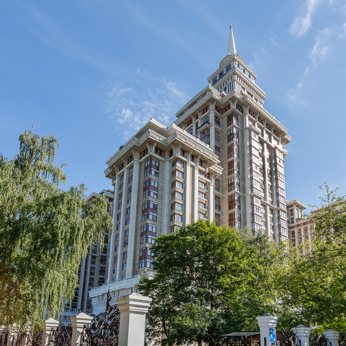 ЖК Новая Звезда — дом бизнес-класса на 120 квартир по адресу Расплетина, 14 в районе Щукино. Величественный классический силуэт оформлен кирпичом терракотового оттенка и украшен объемными карнизами, пилястрами и изящными коваными ограждениями. На закрытой территории оборудована детская площадка, организована вместительная парковка для жильцов, высажены взрослые ели и пышные кустарники — внутренний двор тихий и уютный.